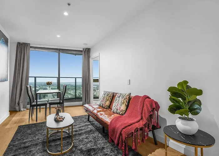 Sky Apartment With Bay View In Cbd With Poo & Gym Melbourne is in the very heart of Melbourne, only 9 minutes' walk from the 297.3 m Eureka Skydeck Skyscraper. The apartment is situated merely 1.8 km from Flinders Street train station and within easy reach of Clarendon Street/City Road bus station.